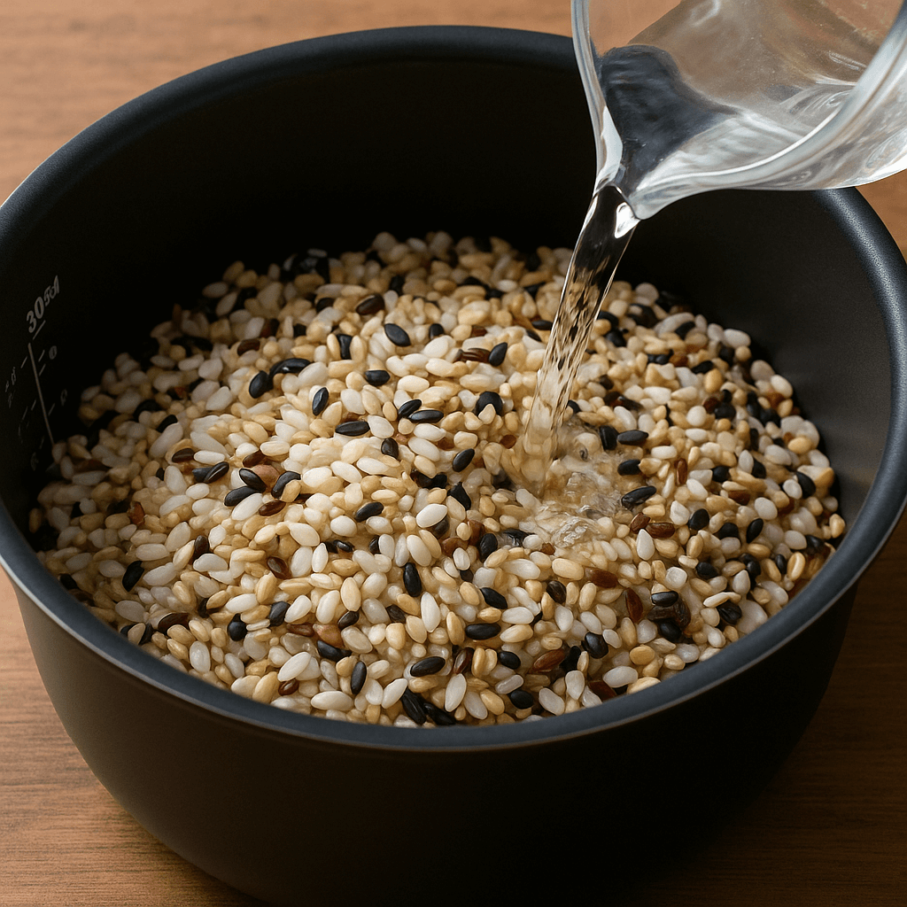 - 잡곡 비율이 높을수록 물을 조금 더 (특히 현미, 콩, 보리 많이 넣을 때)